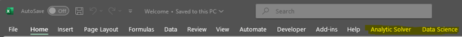 9. The installation was successful if you see both the Analytic Solver and Data Science tabs in your Excel ribbon.